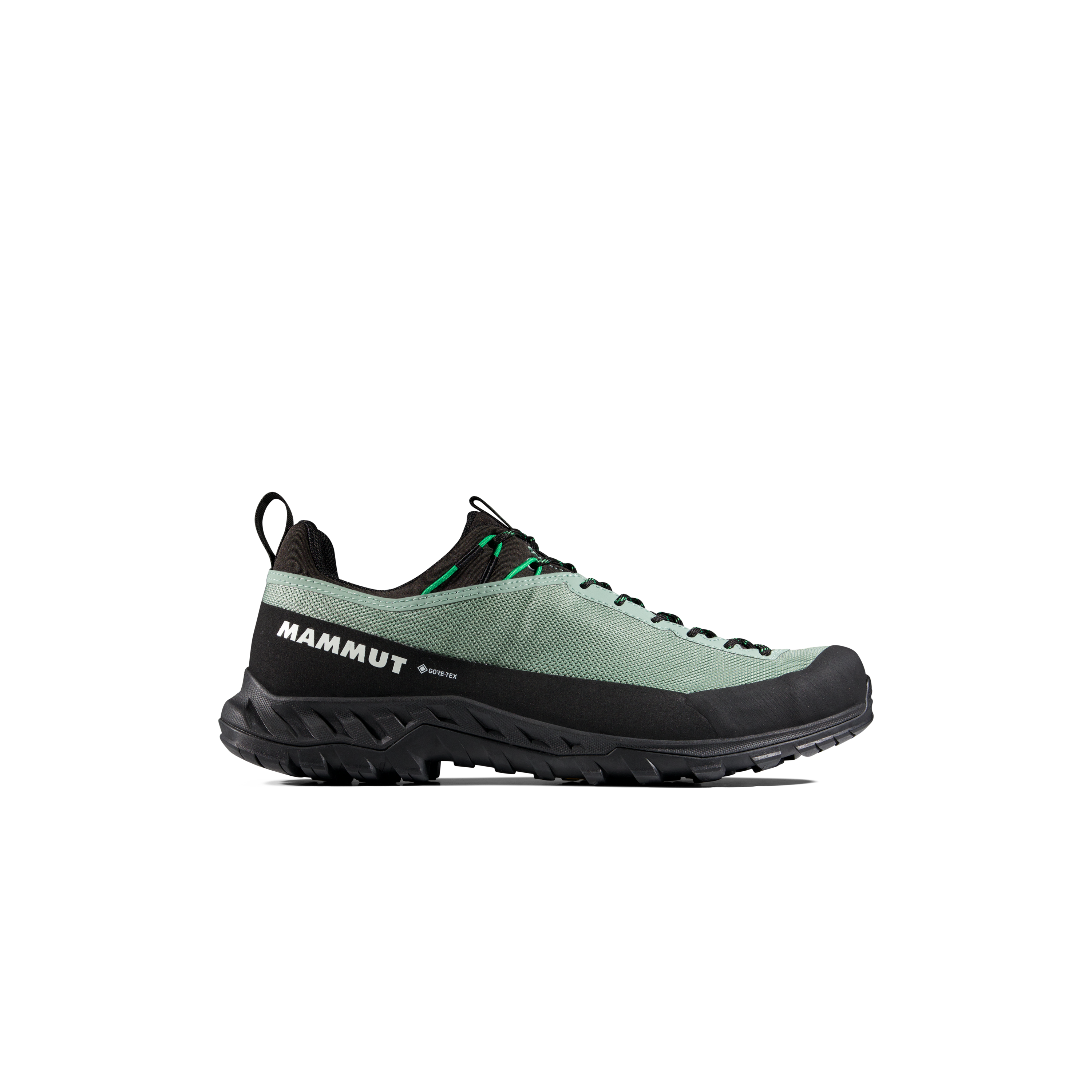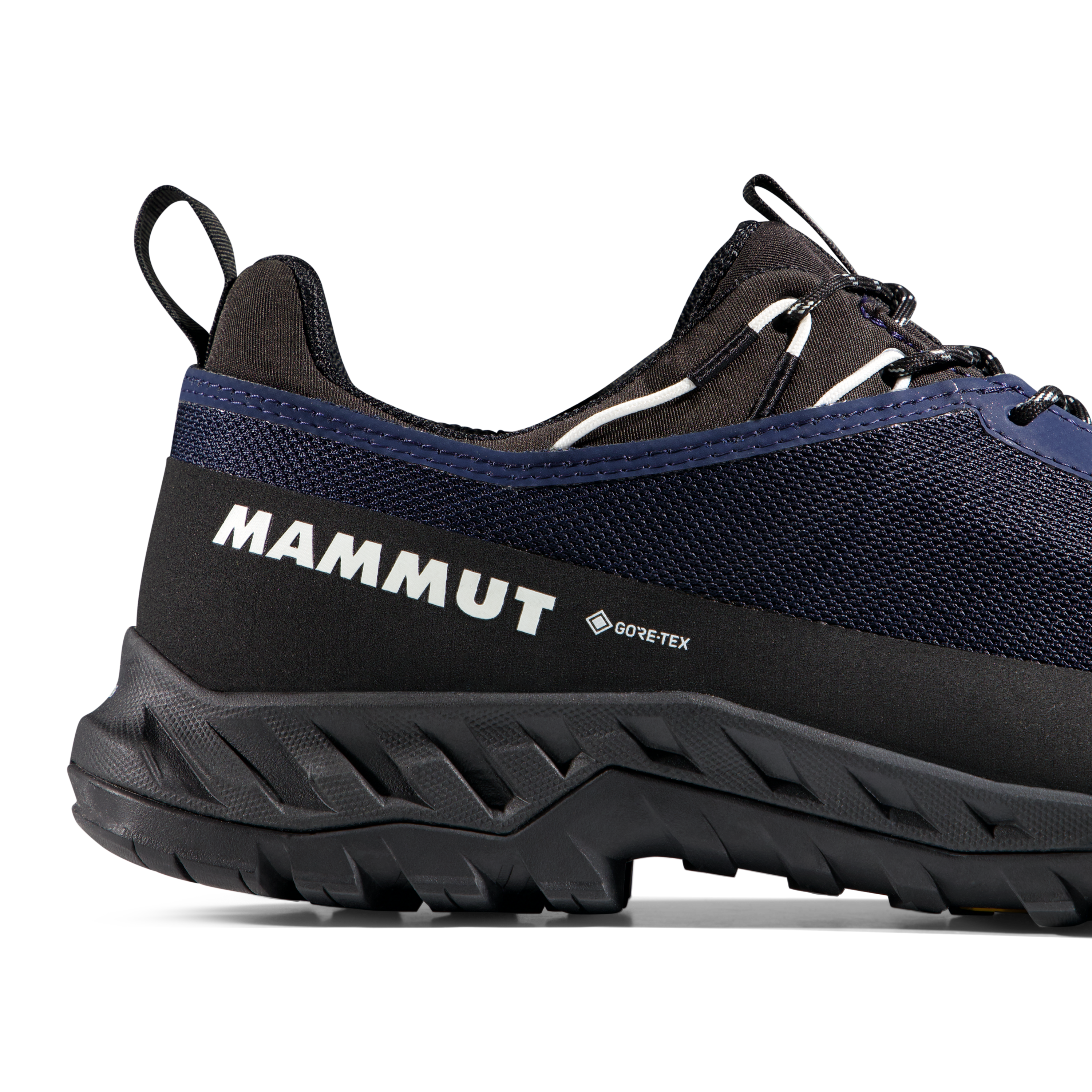 The Vibram® XS Trek outsole with Traction Lug™ is built for a high level of grip, and in the product benefits section Mammut also highlights a climbing zone for dependable traction and durability on unpredictable terrain. Additional protection comes from the rubber toe cap and raised rubber rand, which improve durability and help shield the shoe on rocky and abrasive surfaces.