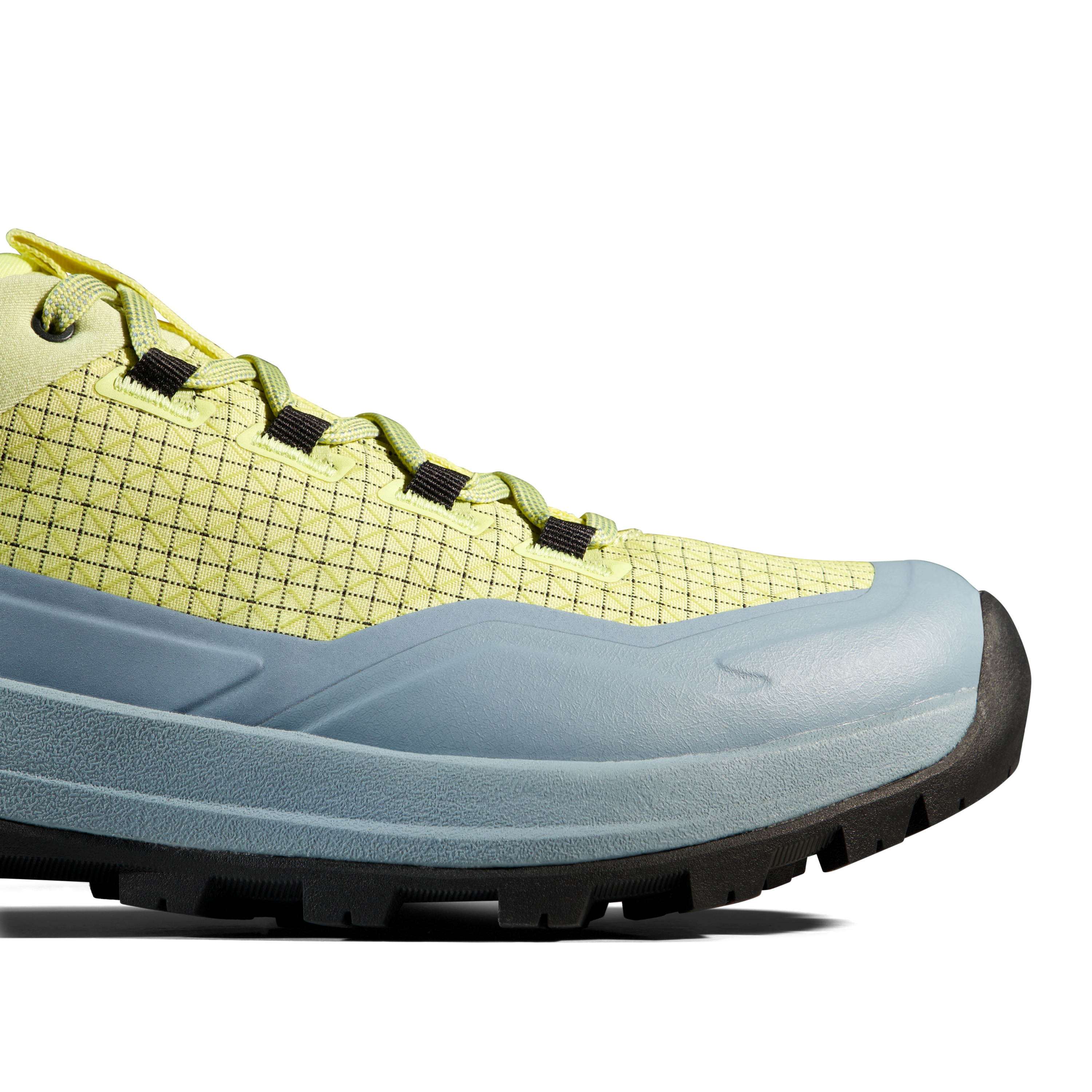 The upper is made from Double Layer Engineered Mesh, combining low weight with solid durability. The manufacturer also highlights an abrasion-resistant fabric upper and rubber rand, which improve protection and durability on rougher surfaces. The Mammut Swiss Design outsole is built for reliable grip in low temperatures, making the shoe a dependable option for mixed terrain and cooler conditions.