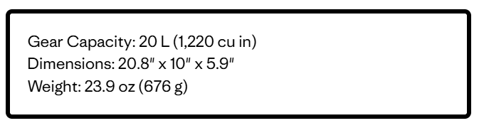 Pack volume is 20 liters