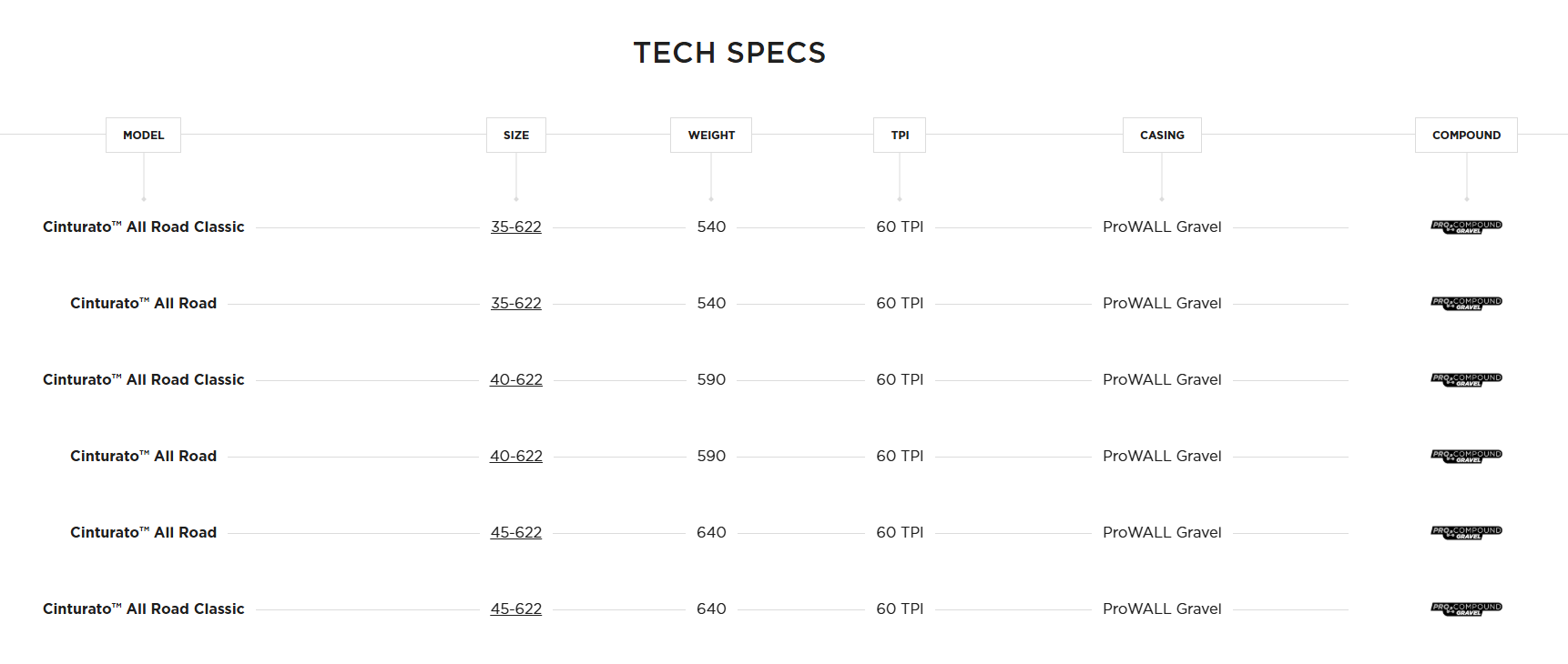 The special rubber compound for Gravel Bikes provides a combination of grip, traction and consistent reliability throughout the life of the tire. The fast yet off-road capable compound is also especially suited for bikepacking adventures due to its durability.
