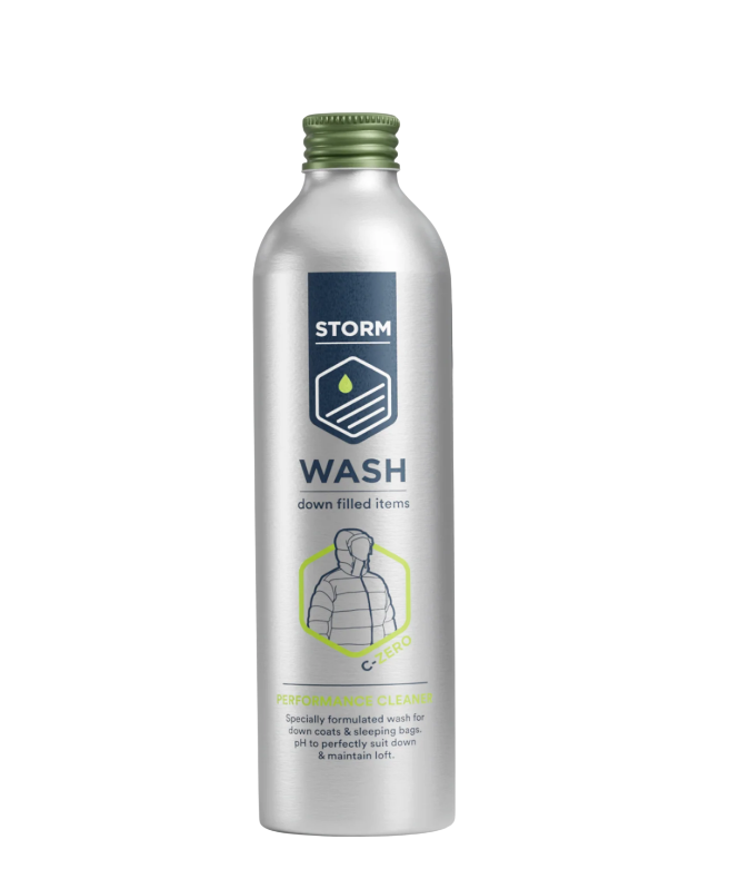 Storm Down Wash is a specially formulated detergent for washing down-filled clothing and gear. It cleans effectively while preserving the natural oils in the feathers to maintain insulation and loft.
